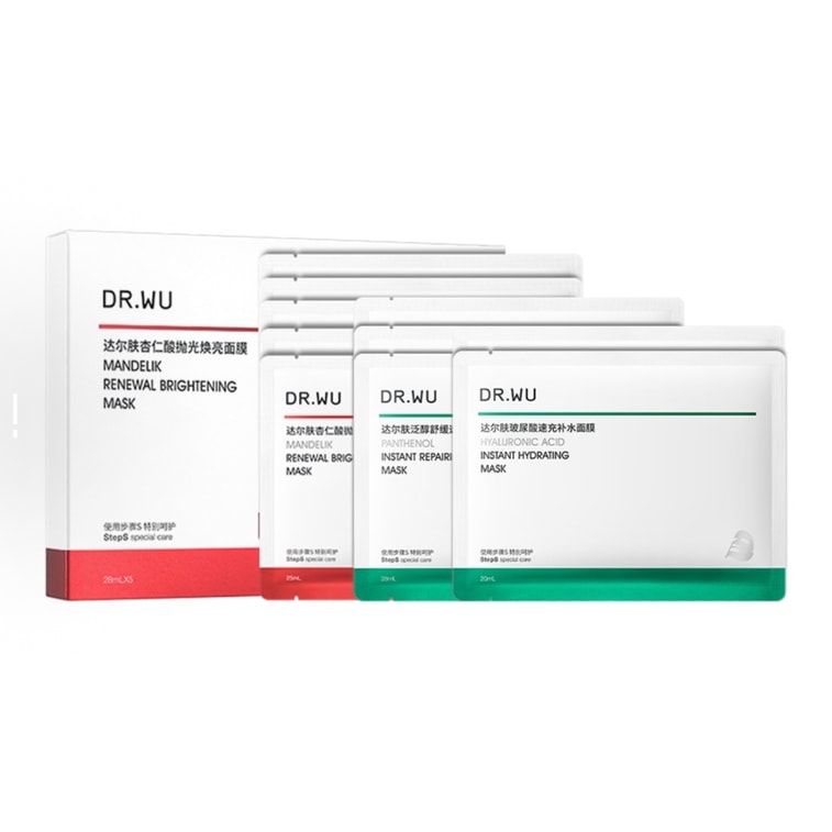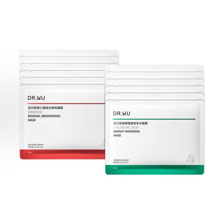 DR.WU 만델산 폴리싱 마스크 (5매) + 히알루론산 수분 마스크 (5매) - 순한 피부 재생, 깊은 수분 공급, 진정 리페어 세트