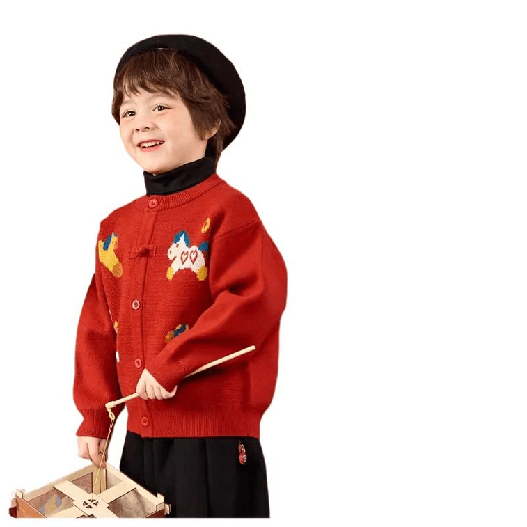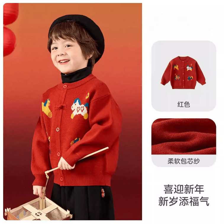 [중국 직배송] 산푸두두 아동용 새해 스웨터, 빨간색, 18-20kg, 1개