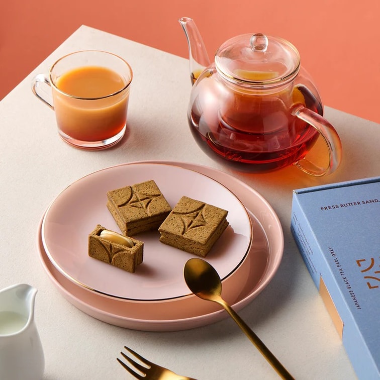 [일본 직송] 인기 온라인 유명 쿠키인 일본식 프레스 버터샌드는 선물로 완벽합니다. 5개입 일본식 얼그레이 홍차맛 버터샌드 쿠키입니다.
