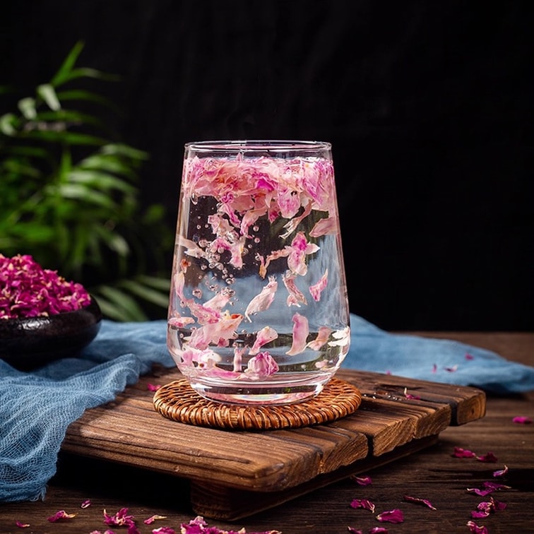 [중국 직배송] 타니모토 미치모토 핑인 장미 꽃잎 조각, 식품 등급 식용 이중 꽃잎 붉은 장미 건조 꽃, 베이킹 장식 및 차 양조용, 20g