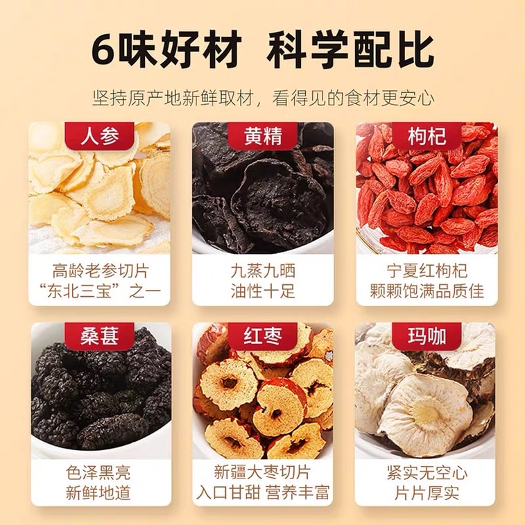 치리샹 인삼 오보차 "연휴를 위한 완벽한 건강 선물" 인삼, 호장근, 구기자, 뽕나무, 대추, 마카 건강차 120g