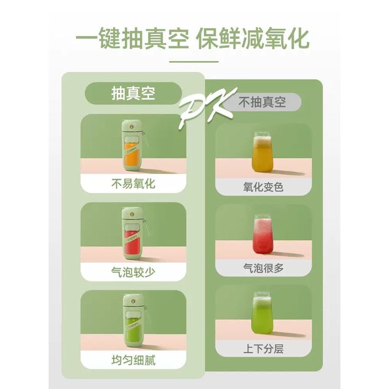 [중국에서 직접 우편 발송] 젠미 진공 주스기 가정용 다기능 전기 미니 소형 휴대용 튀긴 과일 믹싱 주스 컵 아보카도 그린