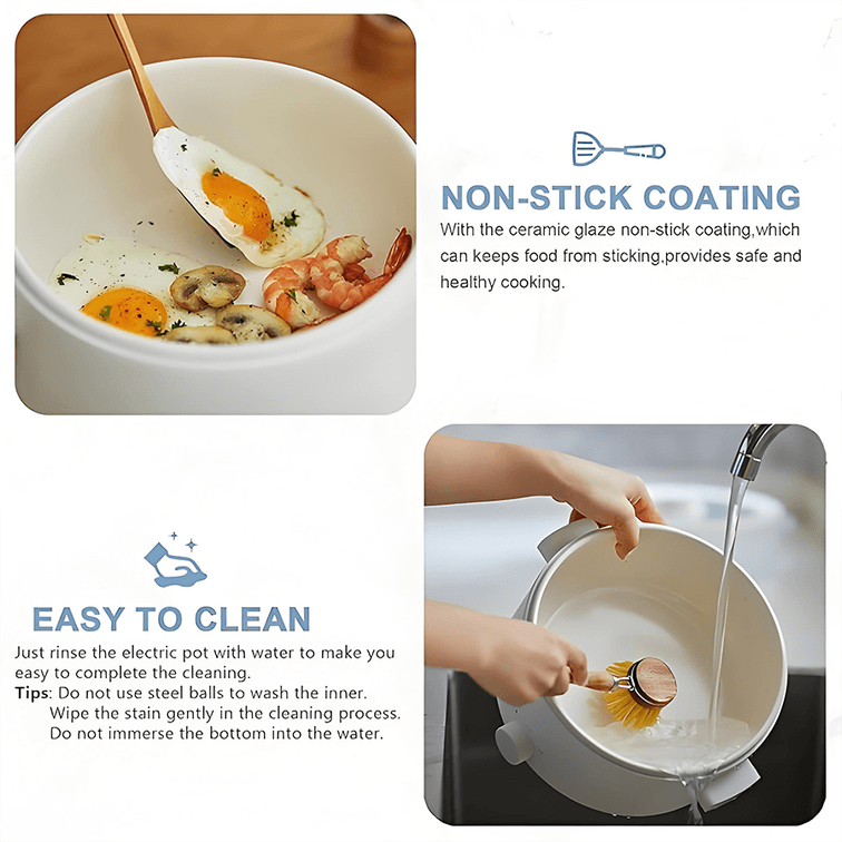 Electric Steamer for Cooking 3L Ceramic Glaze Non-Stick Pot Multi-Functional 100-120V Wide Voltage (Without Steamer)