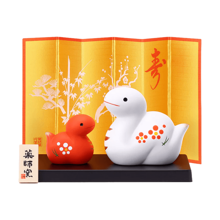 우아한 행운의 뱀 - 빨간색과 흰색 (소형)