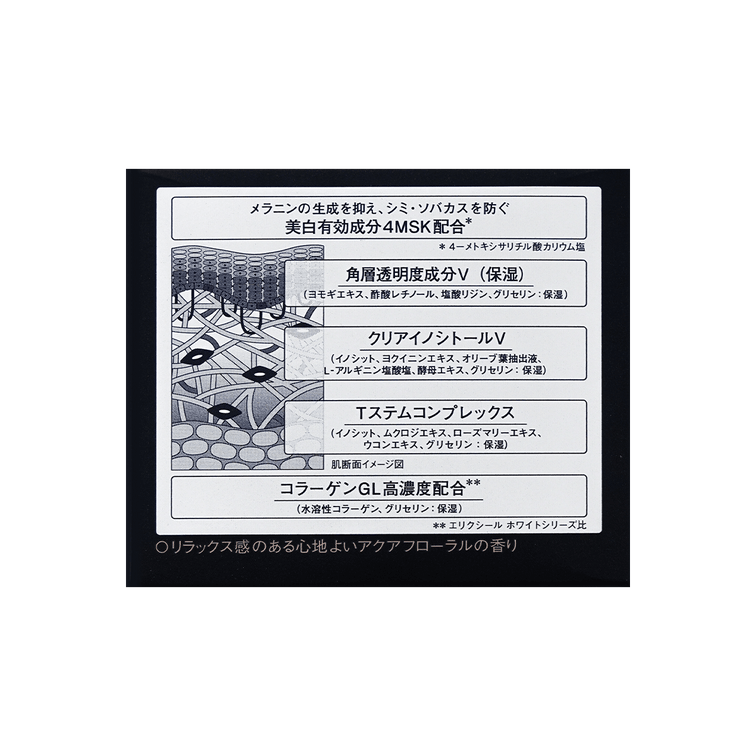특징: 풍부한 크림 엘릭서 브랜드는 미백과 에이징 케어. 칙칙하거나 칙칙한 피부에 화사한 느낌을 주는 화이트닝 크림입니다.