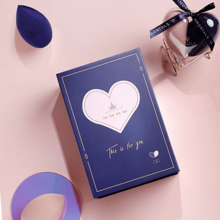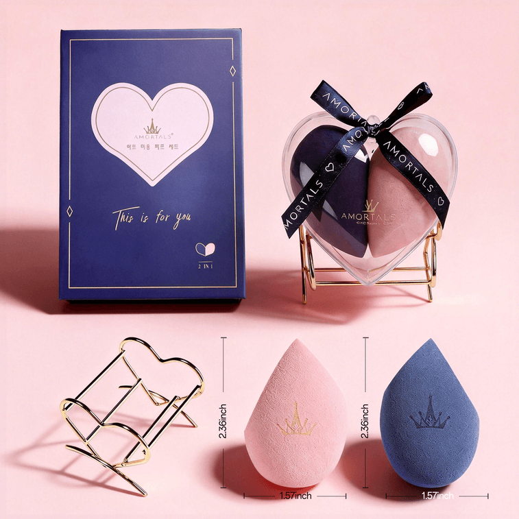 에르무타오 [하트 모양 콤보 팩] 하트 모양 메이크업 스펀지 2개입 - 부드럽고 파우더를 흡수하지 않음 - 더블 하트 디자인 - 피부 친화적인 선물 상자 - 베이스 메이크업을 안전하게 보호