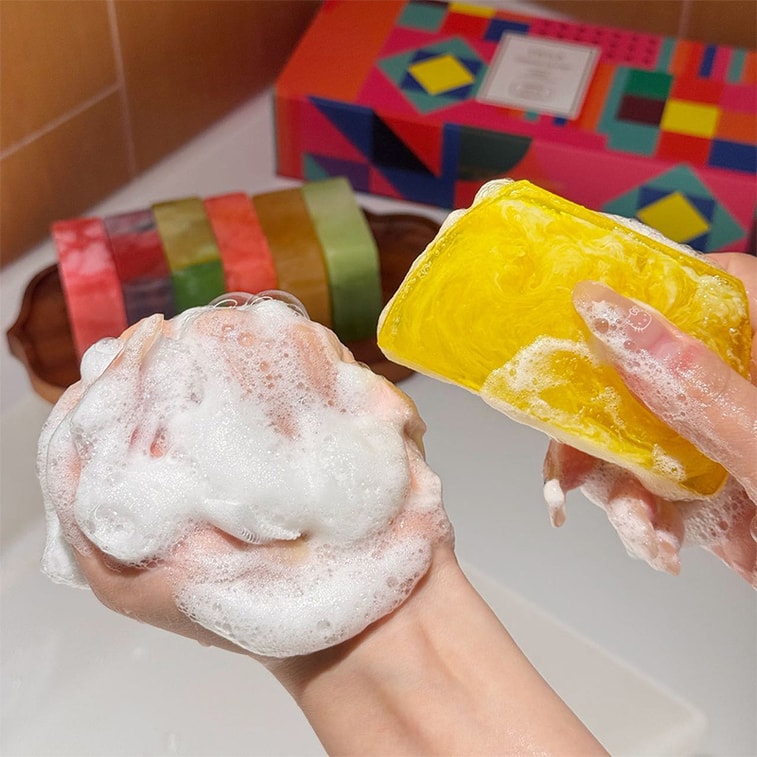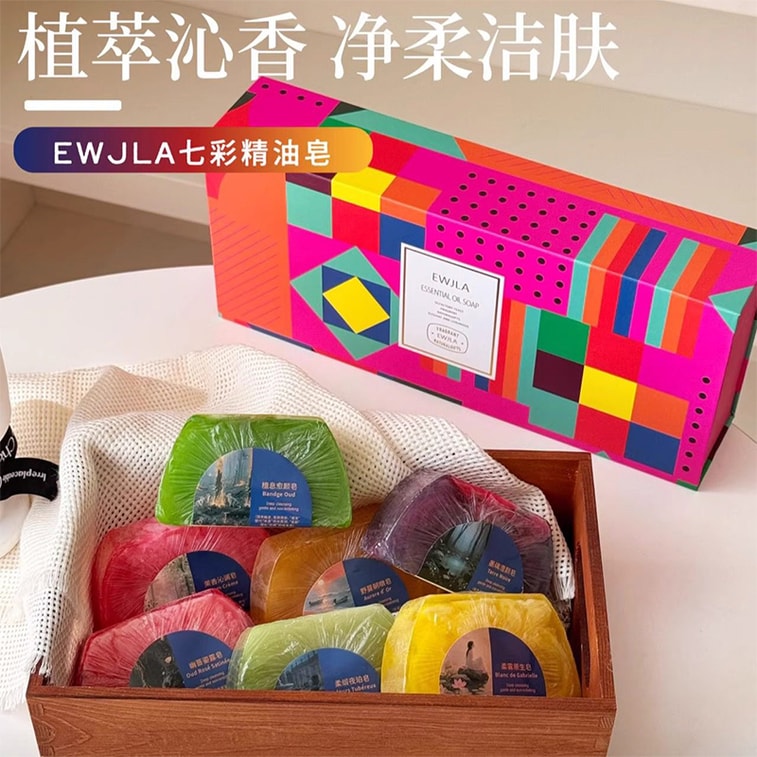 아메리칸 파티나 7색 에센셜 오일 비누 선물 세트 [에센셜 오일 비누 7종 + 거품망] 100% 순수 천연 식물성 에센셜 오일 비누, 실리콘 및 비누 베이스 무첨가 [민감한 피부에도 안전] 향긋하고 부드러운 거품, 여자친구에게 선물하거나 매일 사용하기에 완벽합니다