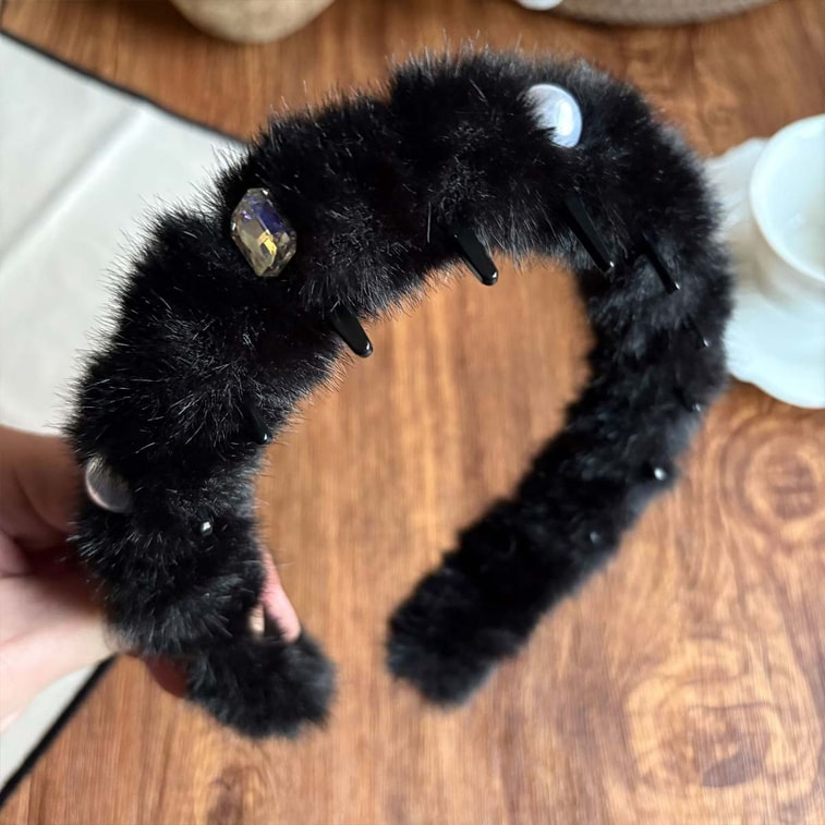 [중국 직배송] HSPM 고급 진주 큐빅 장식 플러시 웨이브 헤어밴드 (여성용), 높은 정수리 압력 헤어밴드, 톱니 모양, 미끄럼 방지 헤어밴드, 헤어 액세서리, 블랙 (1개)