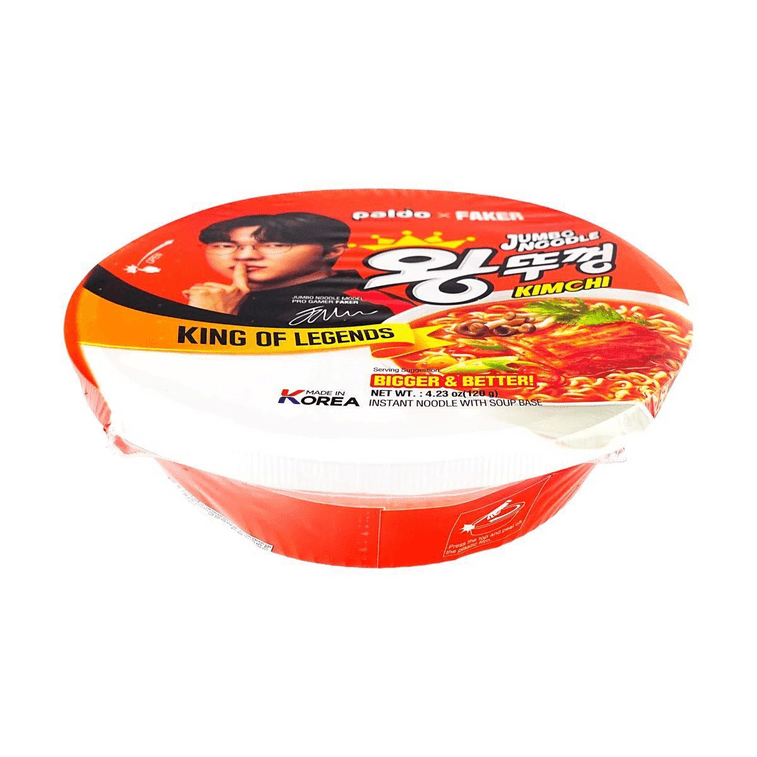 페이커 × 왕투콩 점보 누들 - 국물 베이스 한국식 인스턴트 라면, 김치맛, 4.23온스 【킹 오브 레전드】【더 큰 사이즈