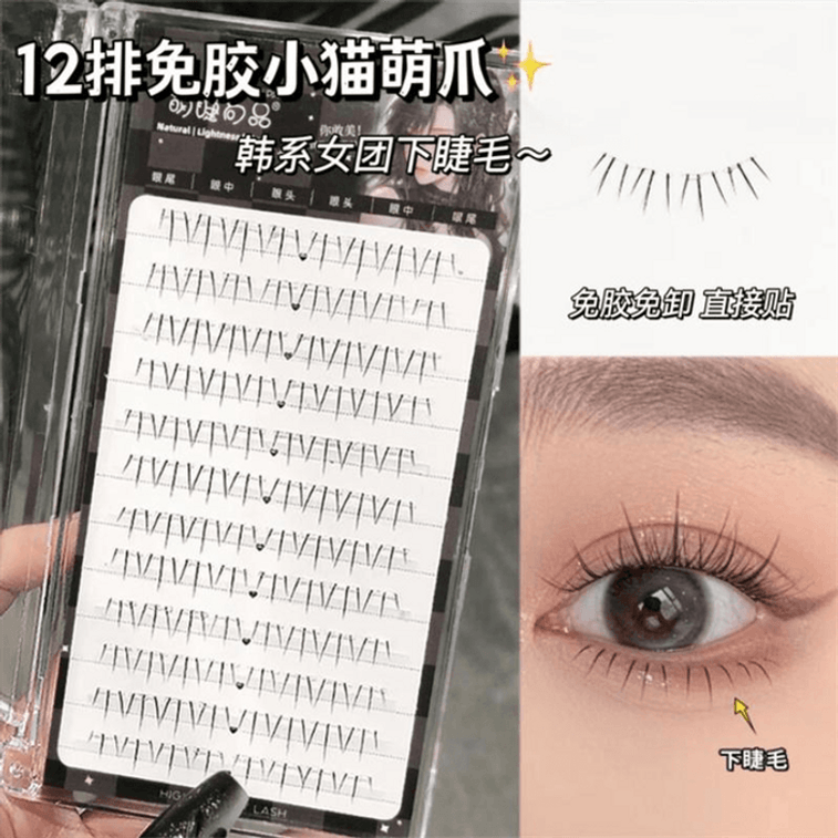 [중국 직배송] 멍제 상핀 속눈썹 - 새끼 고양이 발 모양 속눈썹, 접착제 불필요, 96개 묶음 * 1상자