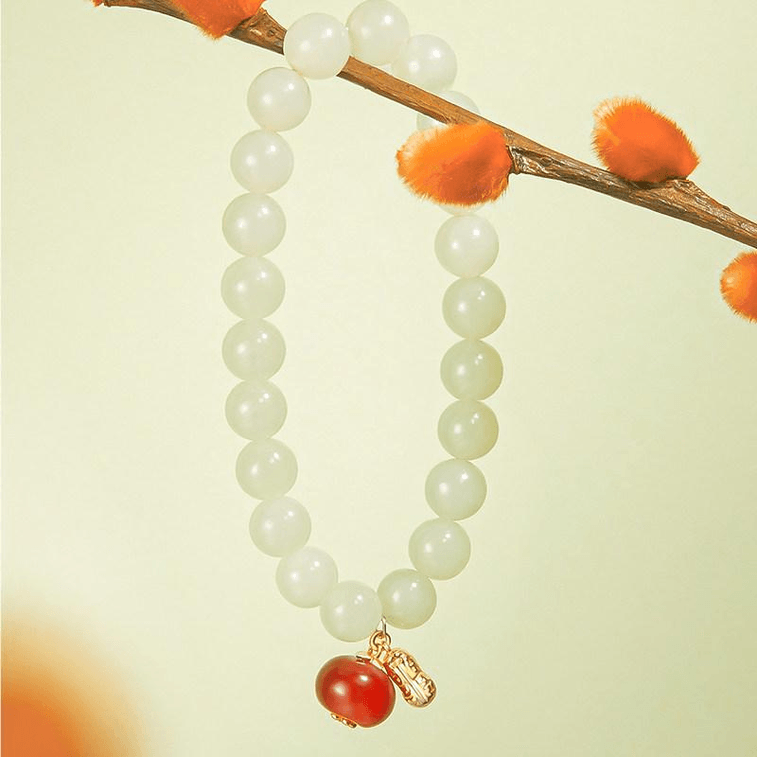 [중국 직배송] 팬치(Fan Qi), "궁주의 행운" 허톈 옥팔찌, 여자친구를 위한 새해 선물, 17.5cm