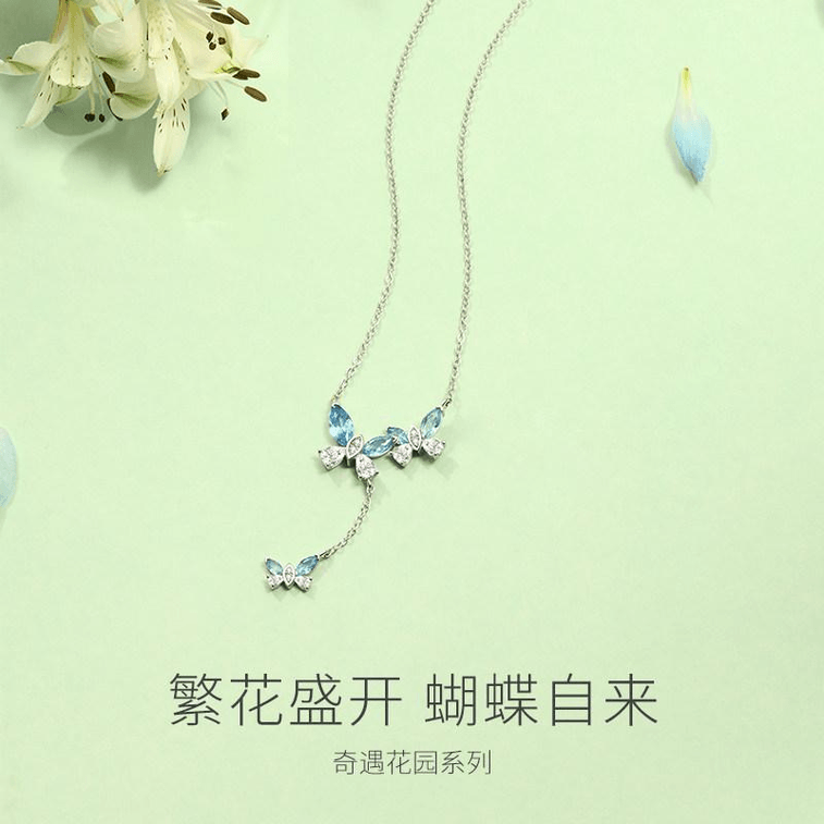 [중국 직배송] 판치(Fan Qi)의 신비로운 정원 시리즈 나비 태슬 목걸이 (여성용, 작은 나비 디자인, 생일 선물) (40+2.5+2.5cm)