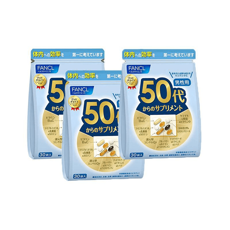 [일본 직통] FANCL 50세대/50세 성인 남성 종합비타민정 30봉*3봉 [가성비 좋은 조합]