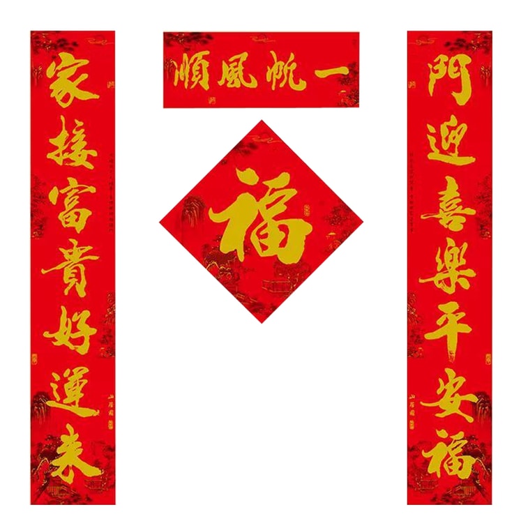 타임스우드 유명 서예가들의 설법 대련 (순항) 1세트 [접착식 뒷면] 현관 장식용 설날 대련 세트