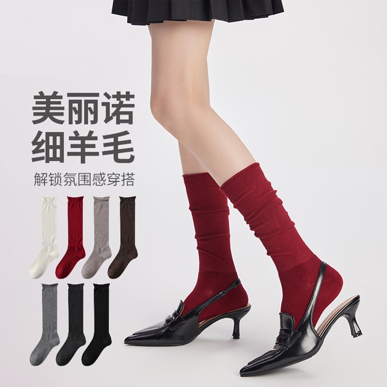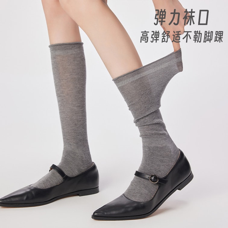 [중국 직배송] HSPM 고급 양모 롤업 슬라우치 양말, 손바느질 발가락 부분, 항균 기능, 개별 포장 종아리 양말, 진회색, F, 1켤레 | Yami