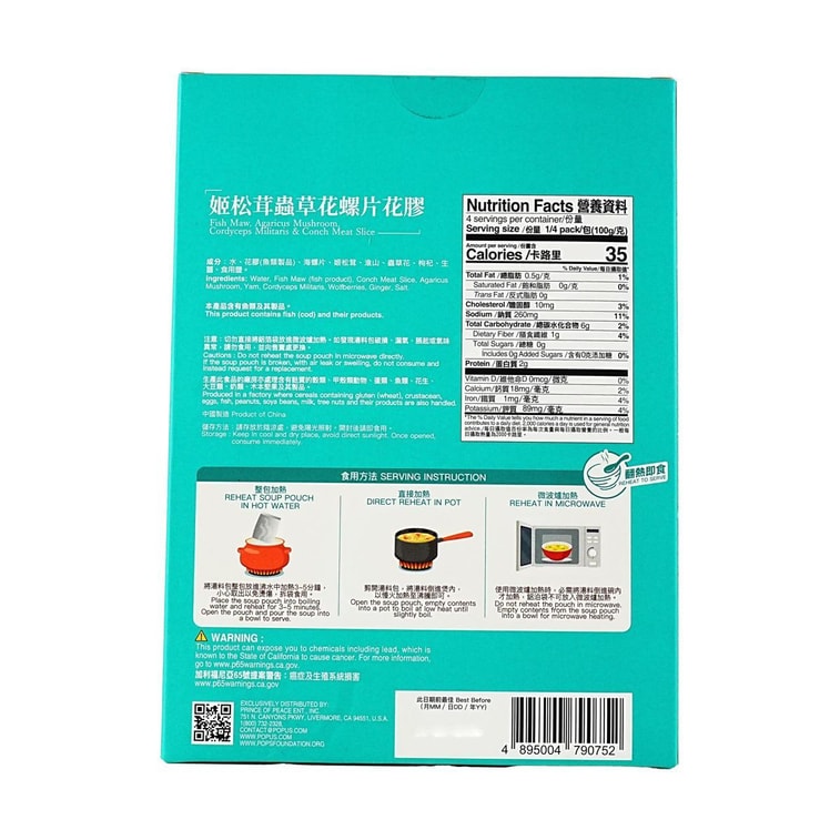 생선 아가리쿠스 버섯 코드셉스 밀리탄스 & 조개 고기 슬라이스, 인스턴트 프리미엄 수프, 14.11온스