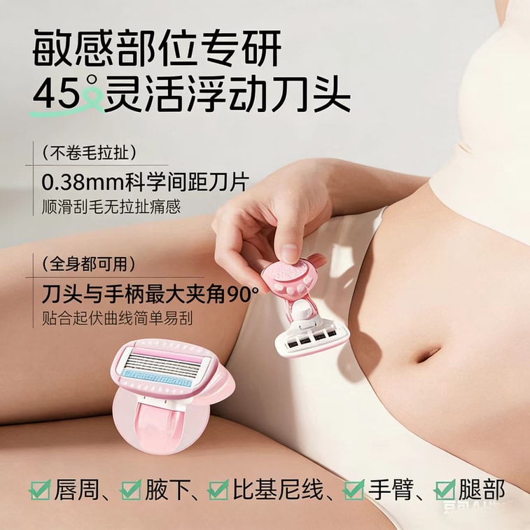 [중국 직배송] 젠메이 이노베이션 여성용 제모 면도기, 겨드랑이 제모기, 다리 제모기, 여성의 은밀한 부위를 위한 통증 없는 면도기, 프레시 그린 (면도기 손잡이 1개, 면도날 1개 + 보관함) * 1세트 | Yami
