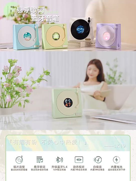 Floating Lyrics Bluetooth Speaker Dynamic Clock Blue 1Piece