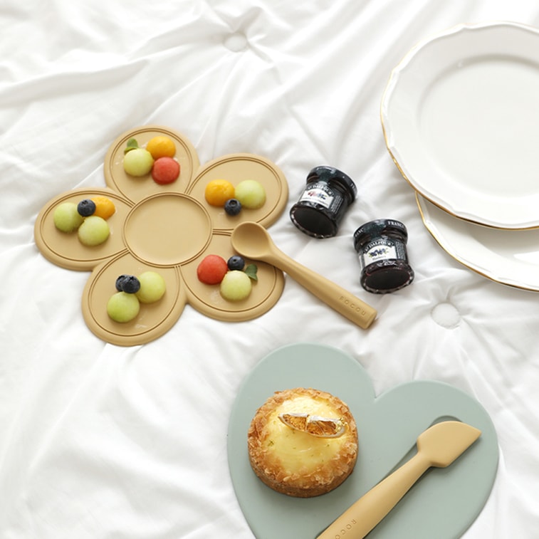 실리콘 이유식 매트 플라워 플레이스매트, 허니 옐로우