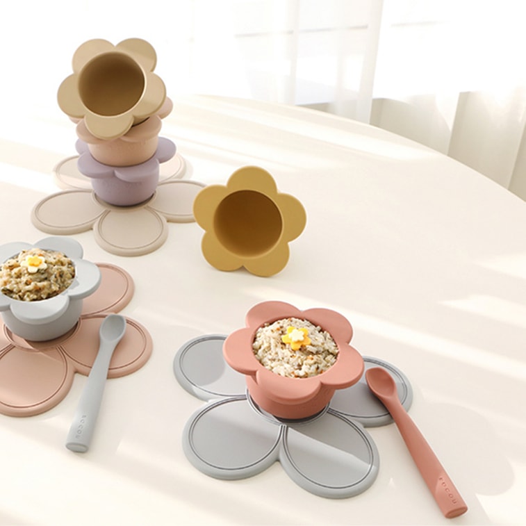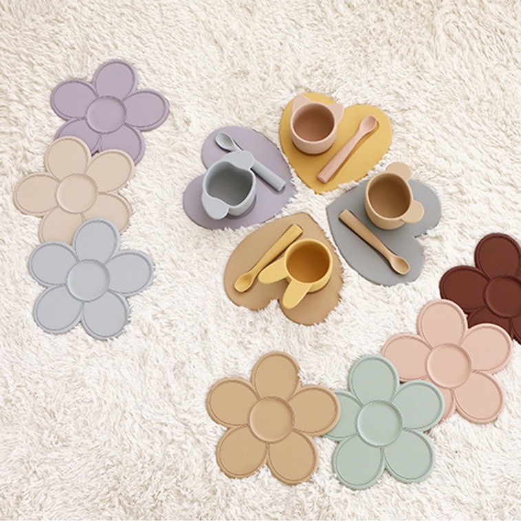 실리콘 이유식 매트 플라워 플레이스매트, 바닐라 블루