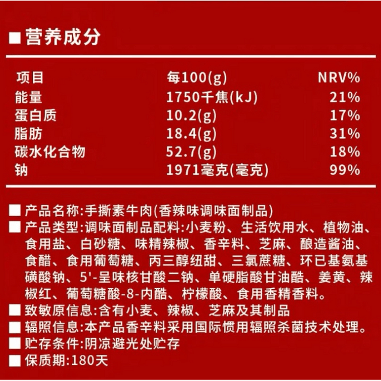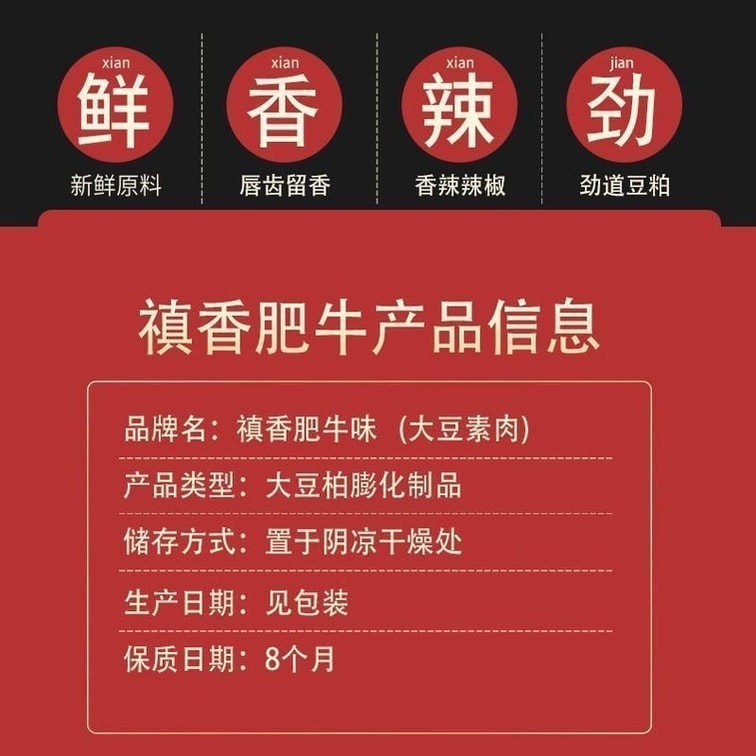 [중국 직배송] 진샹 매콤한 버섯 소고기 스트립 (소스 맛) - 90년대 아이들의 추억을 떠올리게 하는 채식 고기 간식 - 선물 세트 (18g*10팩)