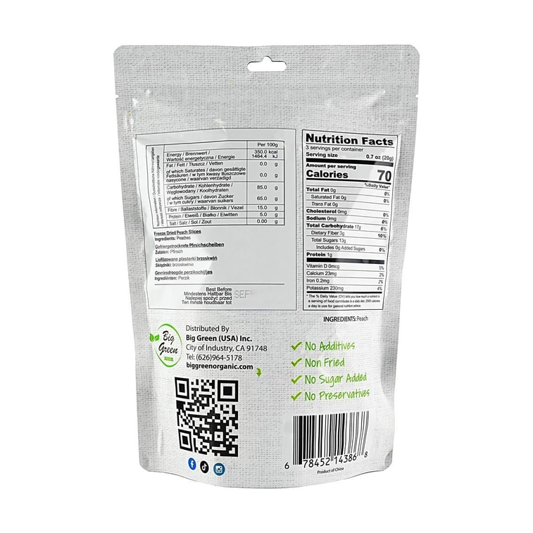 동결건조 복숭아 슬라이스, 60g (2.11oz)【무설탕, 무첨가】