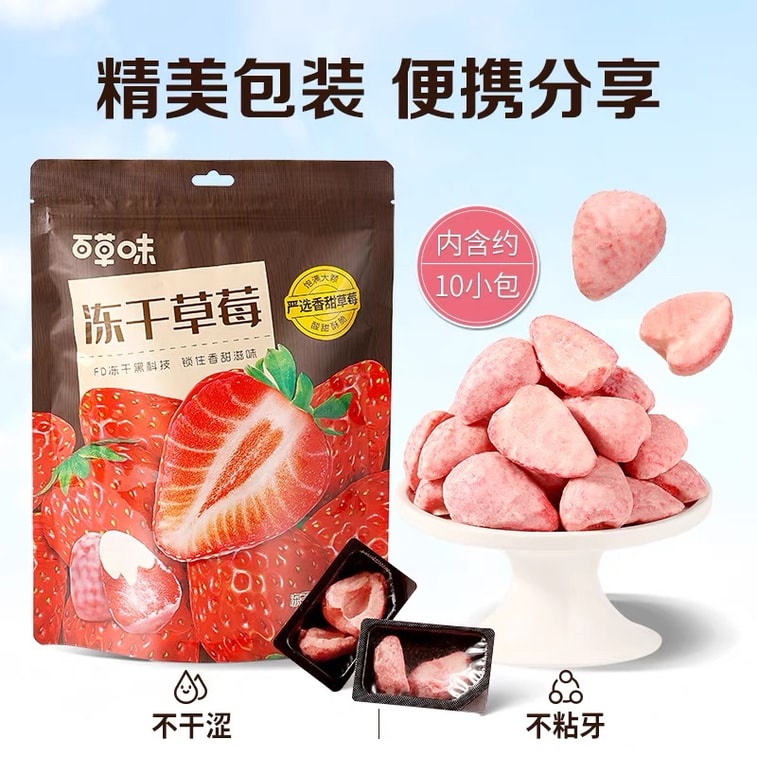 [새해 필수품] 바이차오웨이 동결건조 딸기, 건과일, 보존과일, 40g, 저칼로리, 건강식, 다이어트에도 적합; 요구르트에 찍어 먹으면 더욱 맛있어요