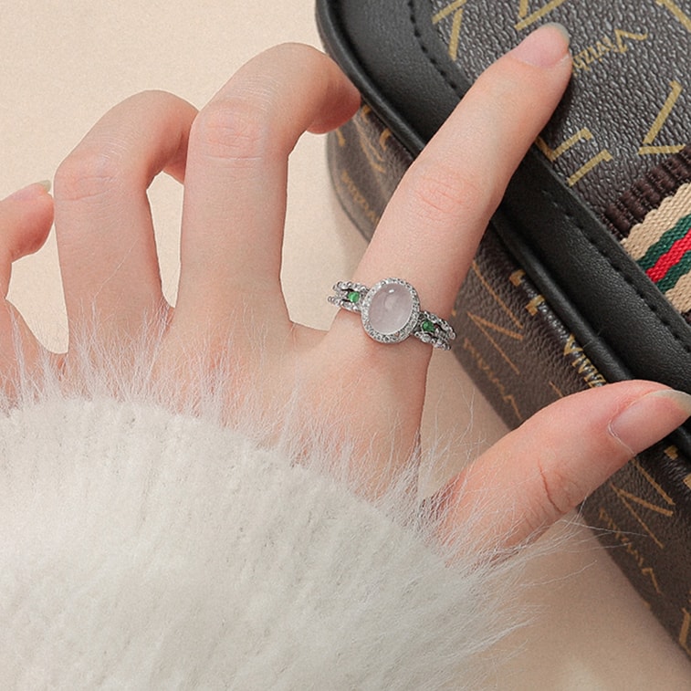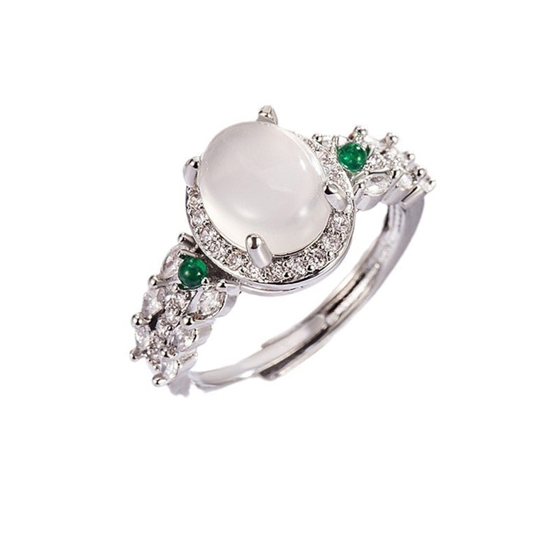 [중국 직송] HSPM 프랑스 스타일 화이트 칼세도니 옥 반지, 여성용, 우아하고 세련된, 고급 럭셔리 인덱스 핑거 반지, 1개, 화이트 칼세도니 다이아몬드 반지, F
