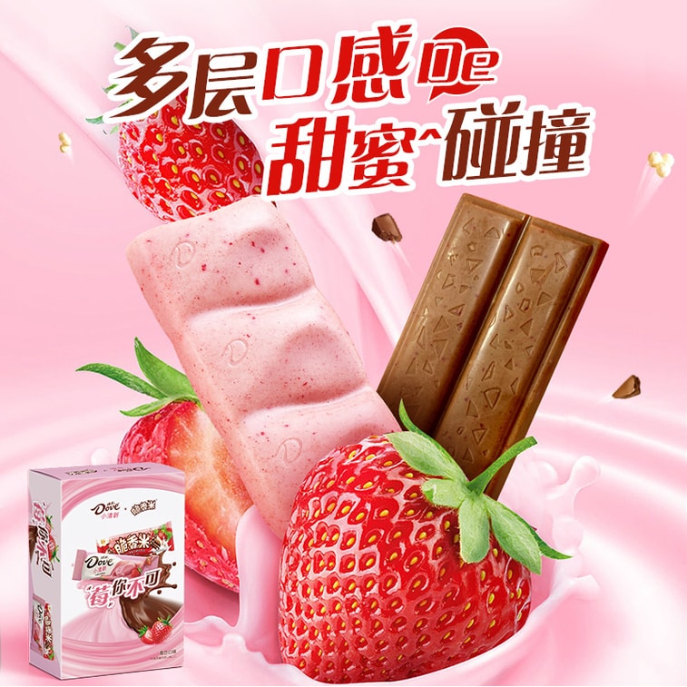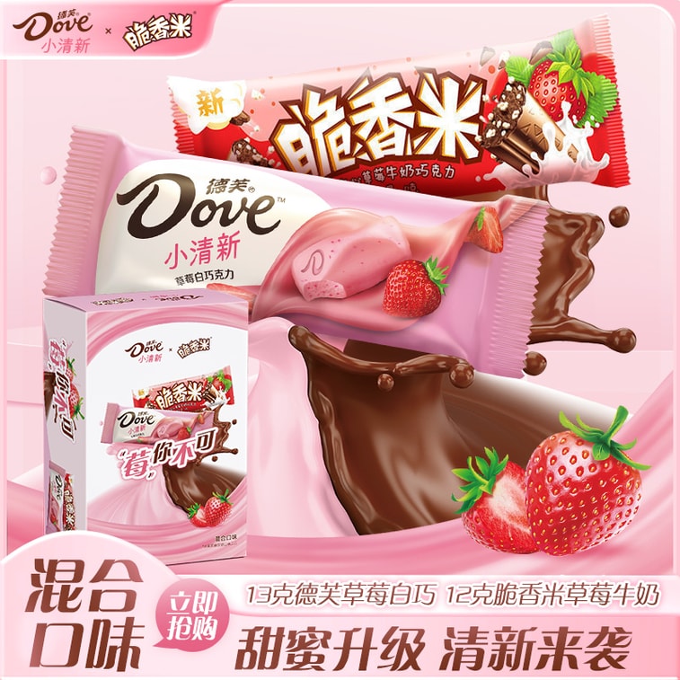 [중국 직배송] 놓칠 수 없는 도브 "딸기": 상큼한 딸기 화이트 초콜릿 & 바삭한 라이스 젤리 12개입 세트 - 새해 선물 [상큼한 새콤달콤, 진하고 부드러운 화이트 초콜릿 & 바삭한 라이스 젤리] | Yami