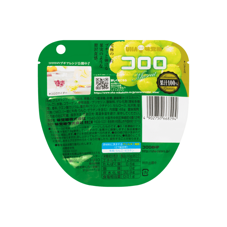 [일본 직송] UHA Japan Mikakuto 100% 그린 그레이프 주스 젤리 캔디 48g
