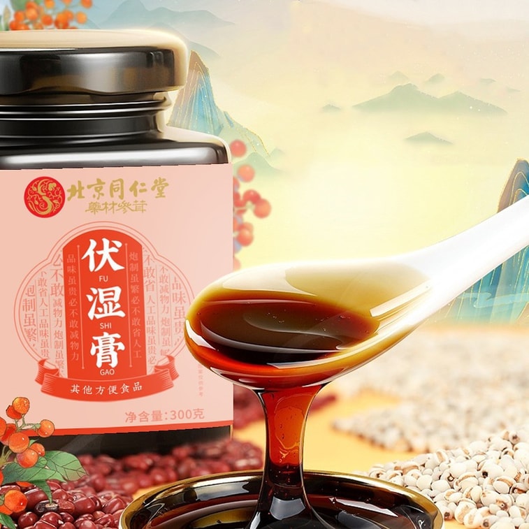 베이징 통런탕의 복면 페이스트는 유리알레 페록스와 복령(전통 중국 약재)으로 만든 수제 페이스트로, 300g/병에 담겨 온라인에서 인기리에 판매되고 있습니다.