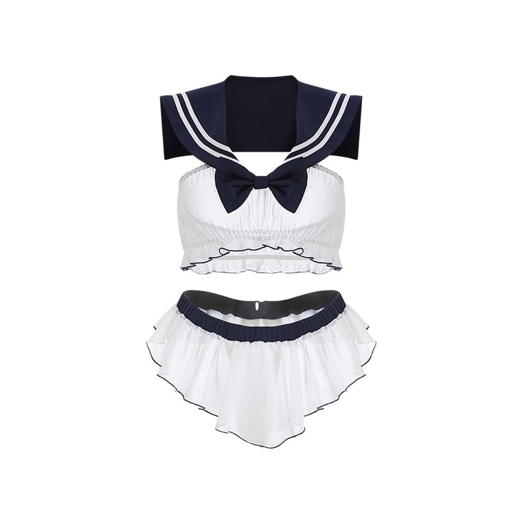 Guiruo 섹시 칼라 프레피 스타일 란제리 세트, 화이트, 원 사이즈