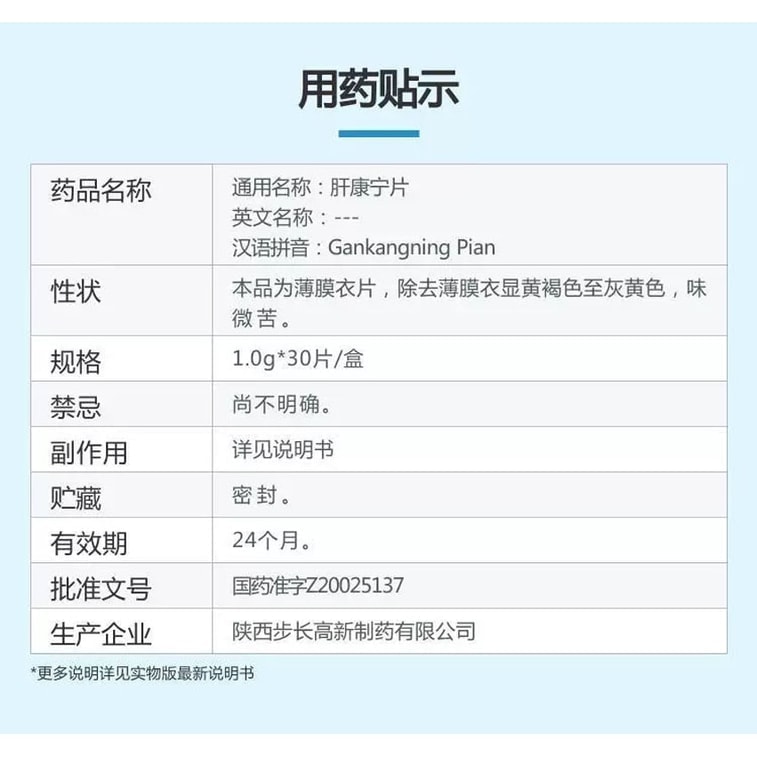 [중국 직송] 간비대, 담낭염, 급성 및 만성 간염, 황달에 사용하는 부창간강녕정(30정/박스)