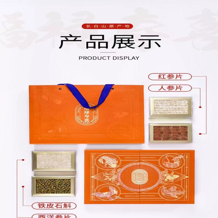 [중국에서 온 다이렉트 메일] 션윈 장백산 인삼 절편 선물박스 1박스 인삼 화기삼 홍삼 덴드로비움 그레이트 기프트 초이스