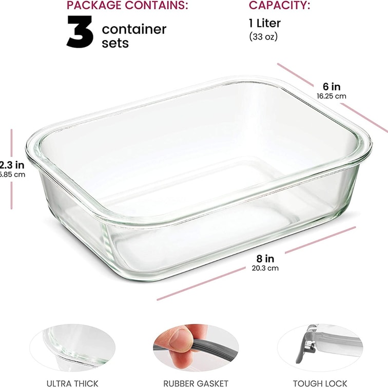 U-Cook 고폴리실리콘 내열 유리 도시락 세트 (3개입)