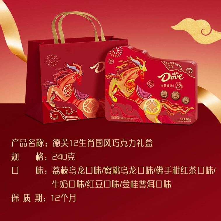 Chocolate New Year's gift box, limited to the zodiac and the Year of the Horse, national style chocolate gift box, New Year's candy gift 240g