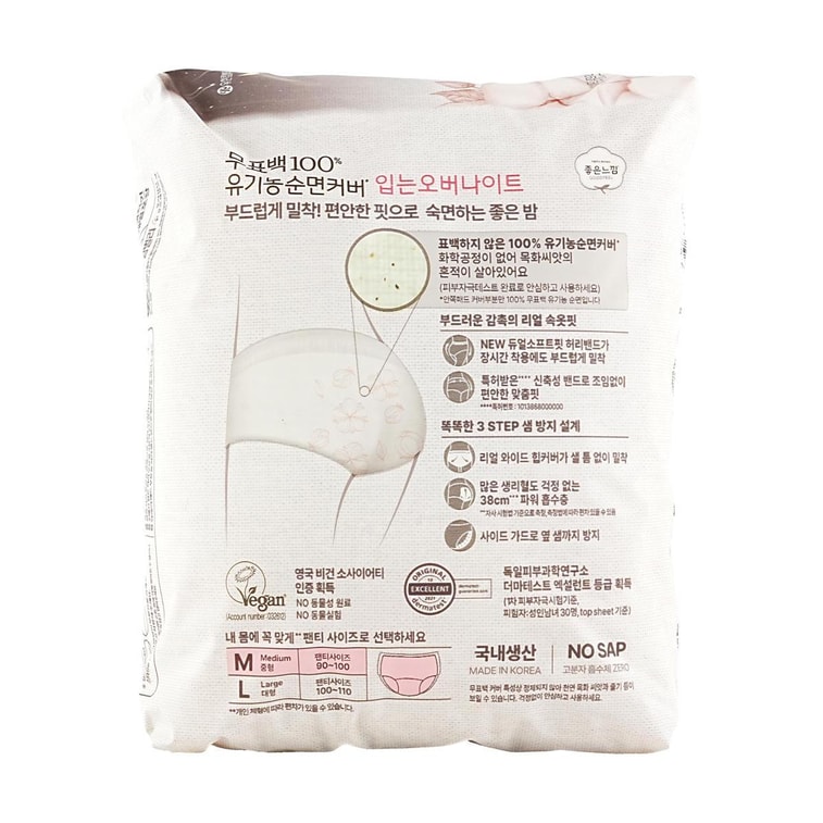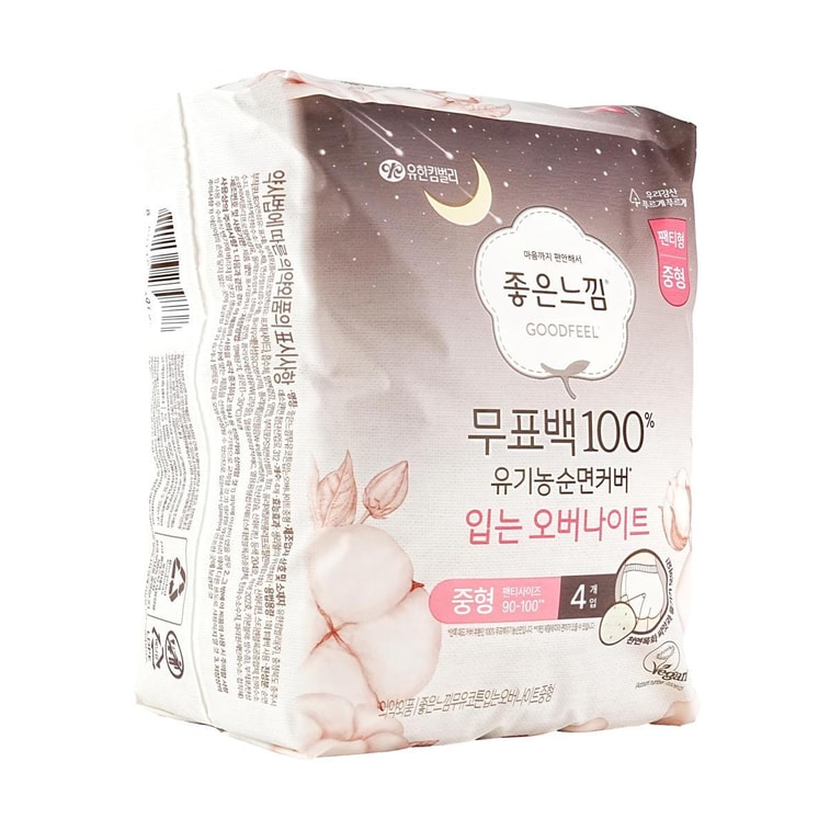 100% 유기농 면 생리 팬티, 사이즈 M, 4개입