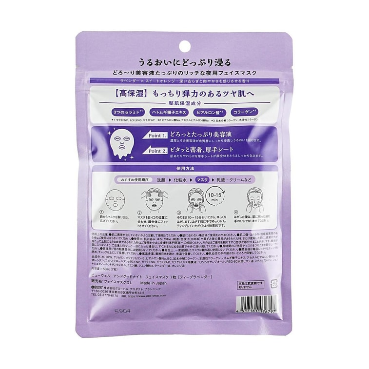 굿나잇 마스크, 7매 - 나이트 리페어 슬리핑 마스크 | 딥 라벤더 | 집중 보습, 피부 장벽 강화