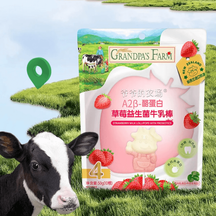 A2 카제인 딸기 프로바이오틱 밀크바, 밀크롤리팝, 어린이 영양 밀크 태블릿 스낵, 50g