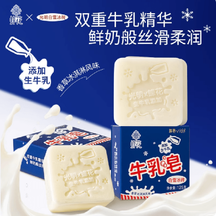 [비앤플라워 x 화이트래빗 콜라보레이션] 스노우 화이트 아이스 브릭 밀크솝 125g [더블 밀크 에센스]