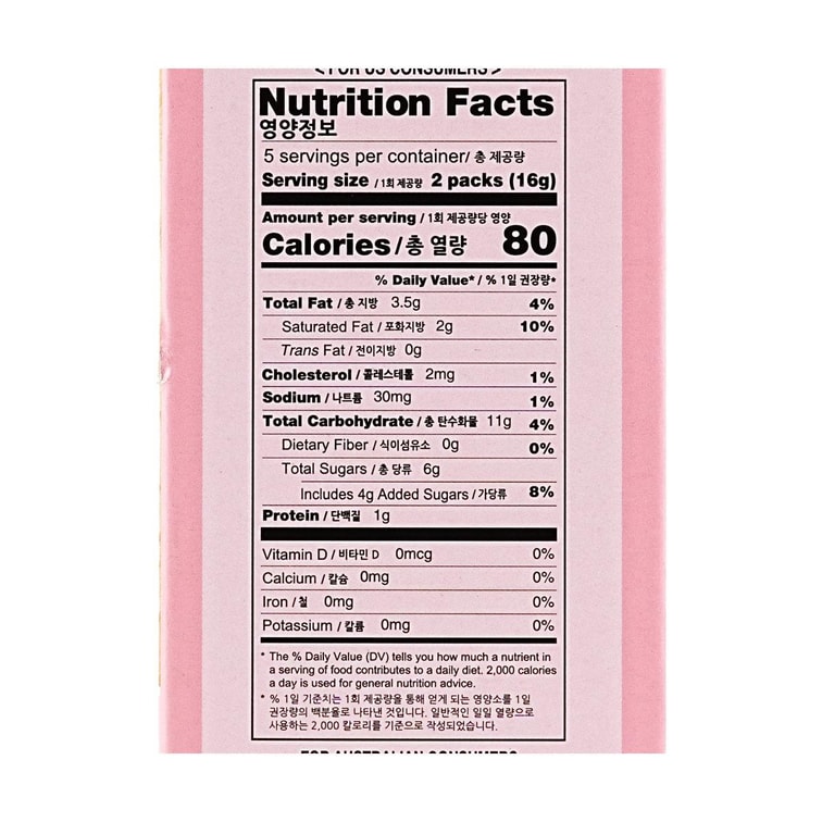 *면책 조항:영양 정보는 제품 포장 기준의 참고용입니다. 버전, 언어, 이미지 차이로 내용이 다를 수 있습니다. 실물 포장을 확인해 주세요. 성분, 알레르기, 사용 대상 문의는 라벨 확인 또는 고객센터 문의 바랍니다.