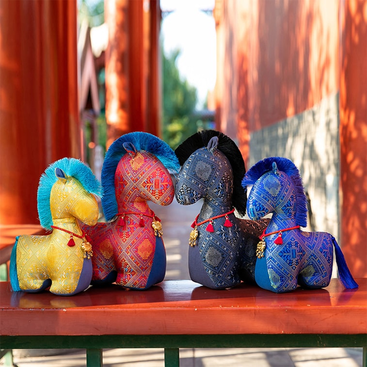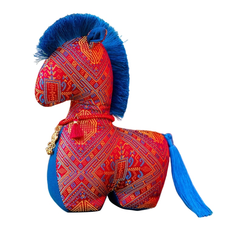[중국 직배송] HSPM 트렌디 꽃무늬 원단 말 인형, 봉제 말 장난감, 민속 조디악 말 인형, 선물, 붉은 길조 원단 말, 15cm, 1개
