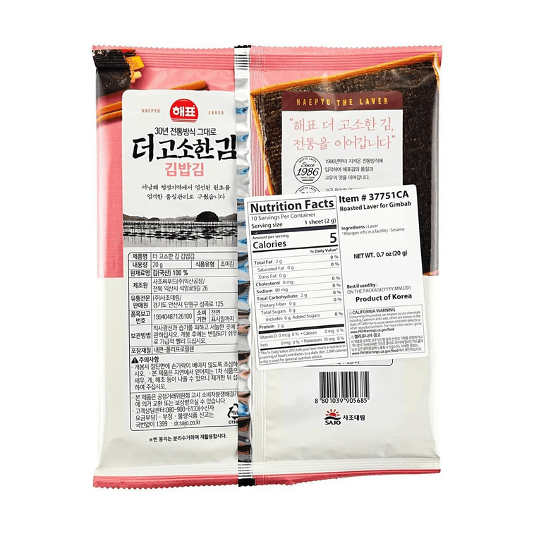 한국식 구운 김 - 김밥 & 초밥용 김, 19g