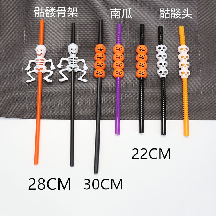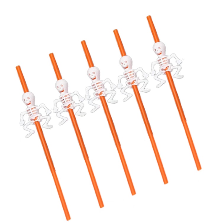 Halloween Straw Party Decorations -Orange Skull 5Pc