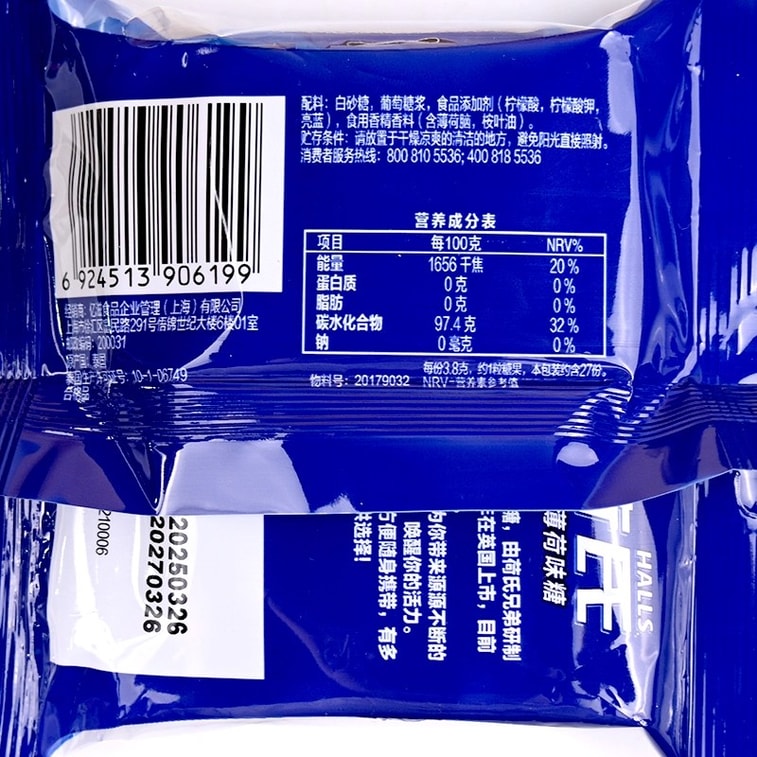 [중국 직배송] 강렬한 쿨링 효과! Halls 미드나잇 스톰 민트 - 강력한 쿨링 효과, 목 진정, 심야 운전에 딱 맞는 간식 - 34g x 2개입