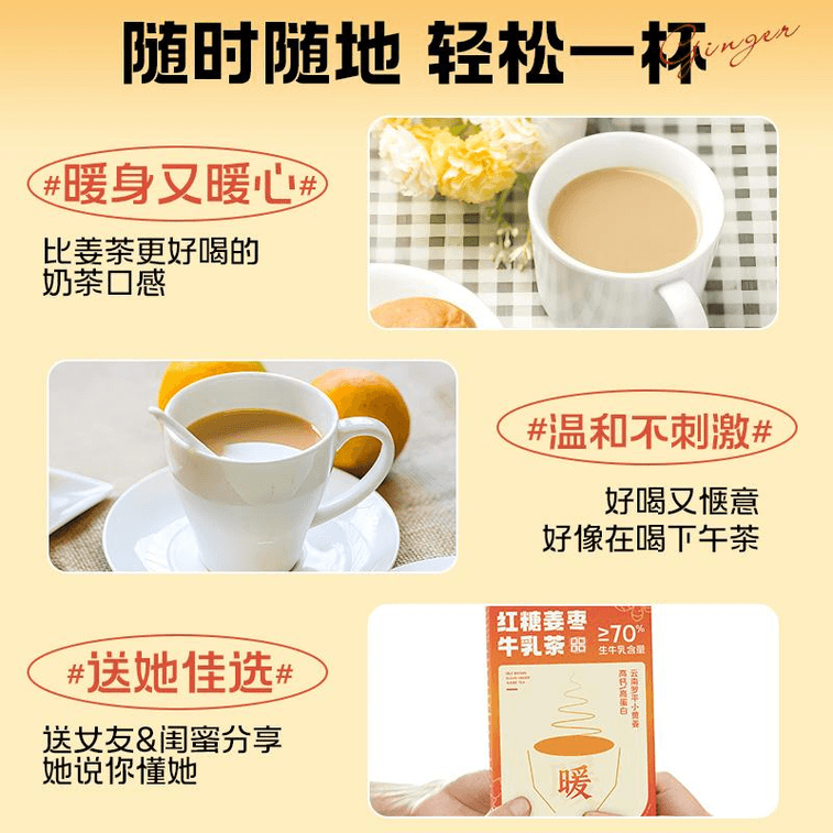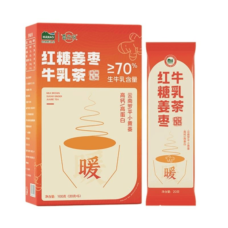 [중국 직배송] 하나스데어리 흑설탕 생강 대추 밀크티 따뜻한 음료용 생밀크티 분말 100g*1박스