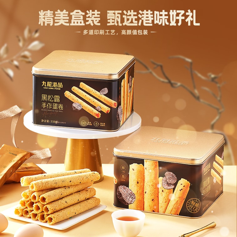홍콩 구룡 특산품: [야미 독점] 블랙 트러플 수제 에그롤 [캔] 350g. 옛날 방식 그대로 만든 바삭한 에그롤 비스킷. [블랙 트러플 크럼블이 계란 향을 더함] [황금빛 바삭함]