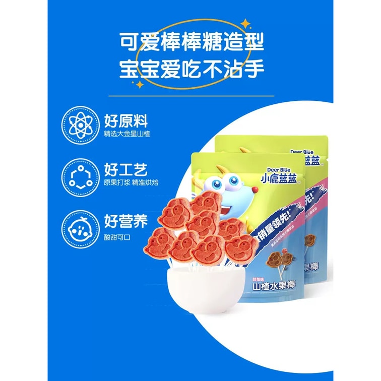 [중국에서 직접 우편] 샤오루 란란 호손 롤리팝 과일 스낵 블루베리 맛 3개 봉지