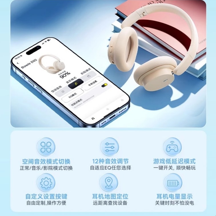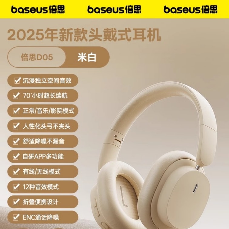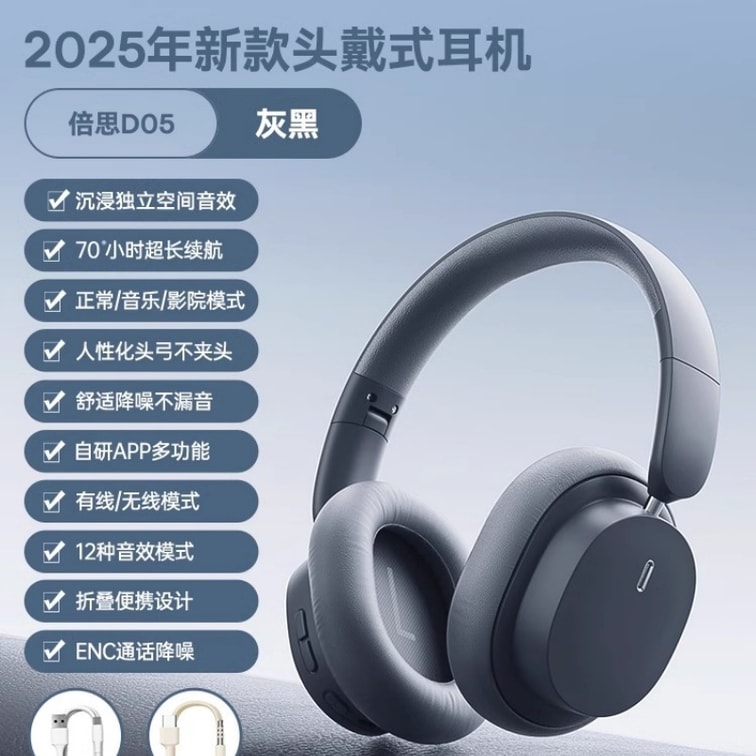 【중국 직송】BASEUS 온이어 헤드폰 블루투스 헤드셋 무선 노이즈 캔슬링 헤드셋 커버 신제품 D05-그레이