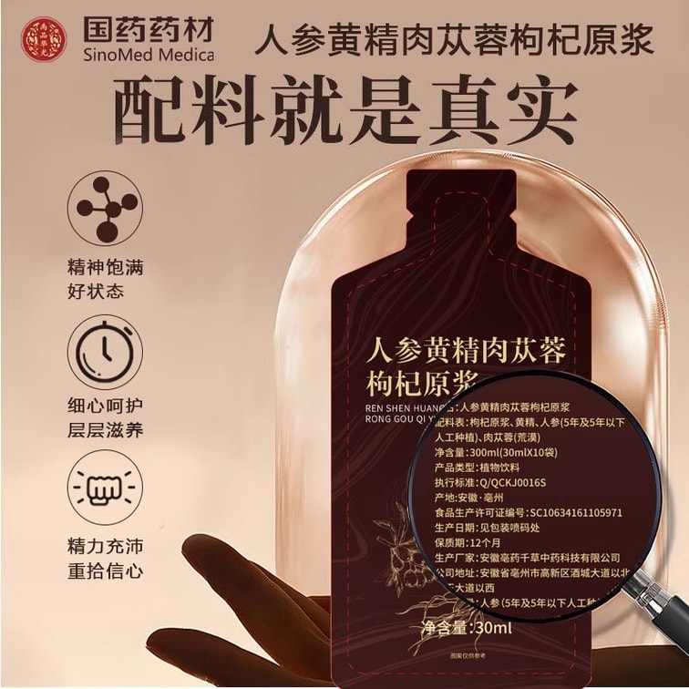 | 재료 | 인삼, Polygonatum, Cistanche 및 Wolfberry |